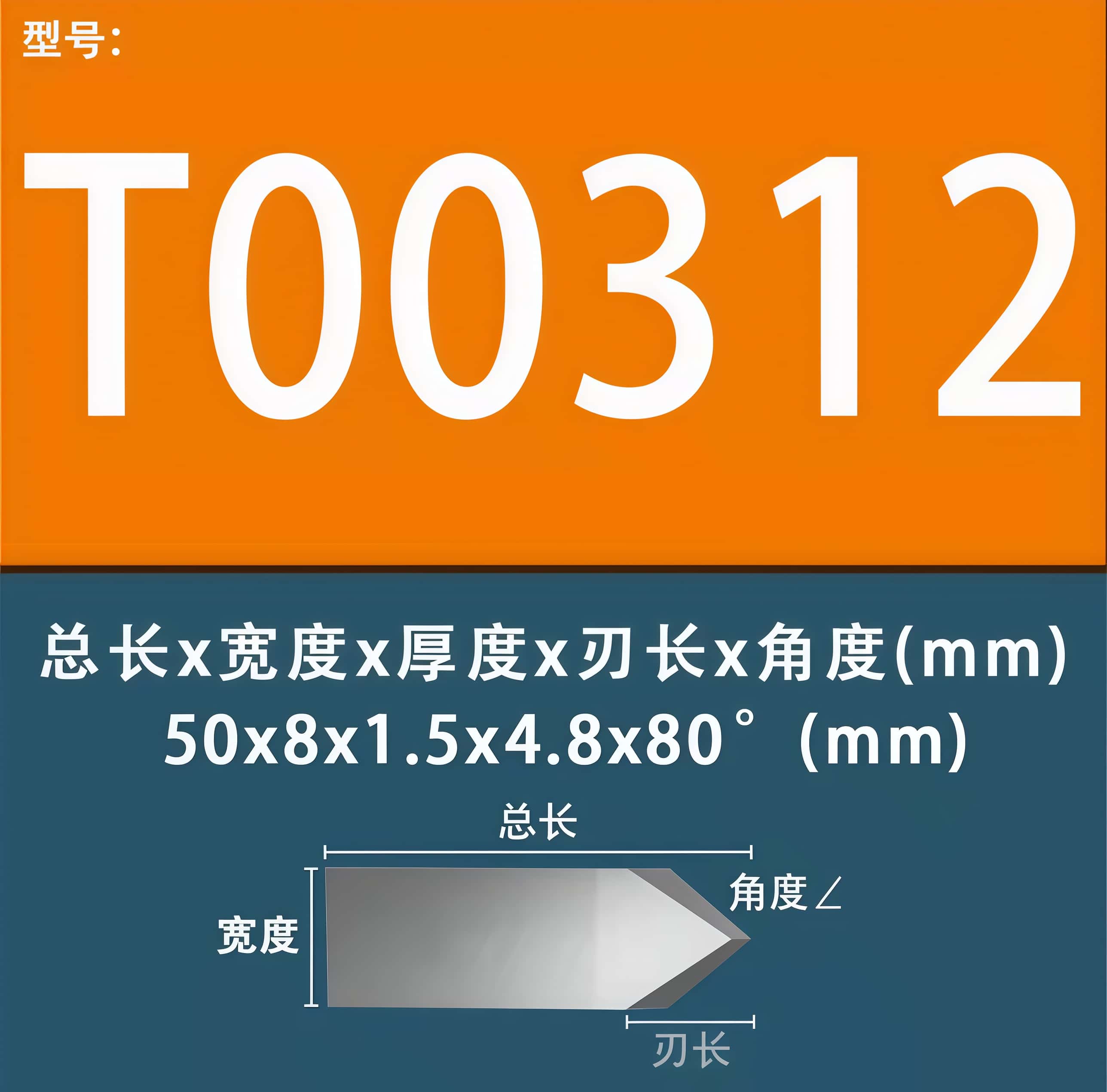 T00312 80 degree double edge blade designed for cutting materials like vinyl, magnet, PVC, and styrene up to 3mm (1/8″)