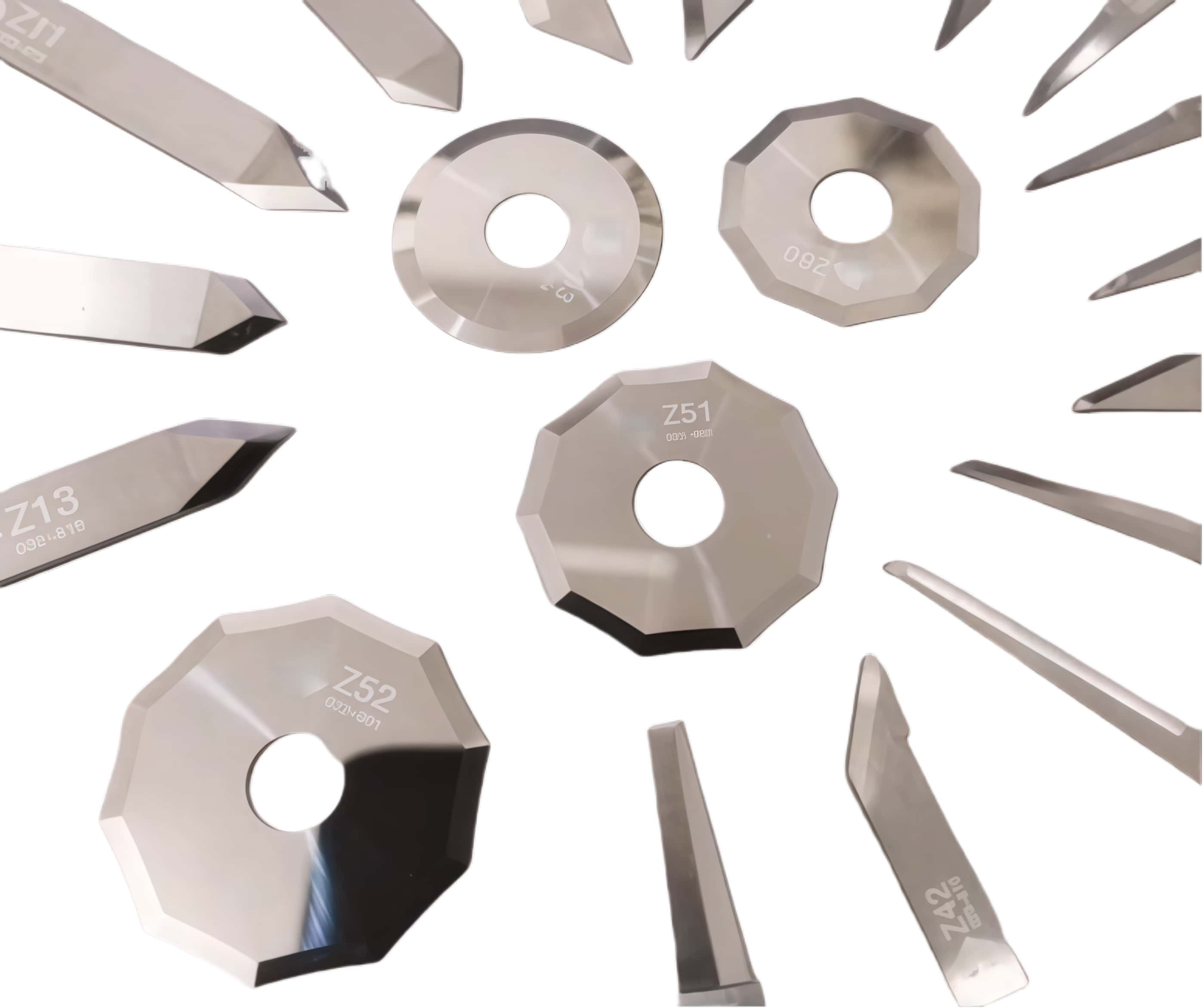13. Circular blades for textile industry: used for cutting and splitting operations in textile machinery, such as cutting cloth, yarn, etc.