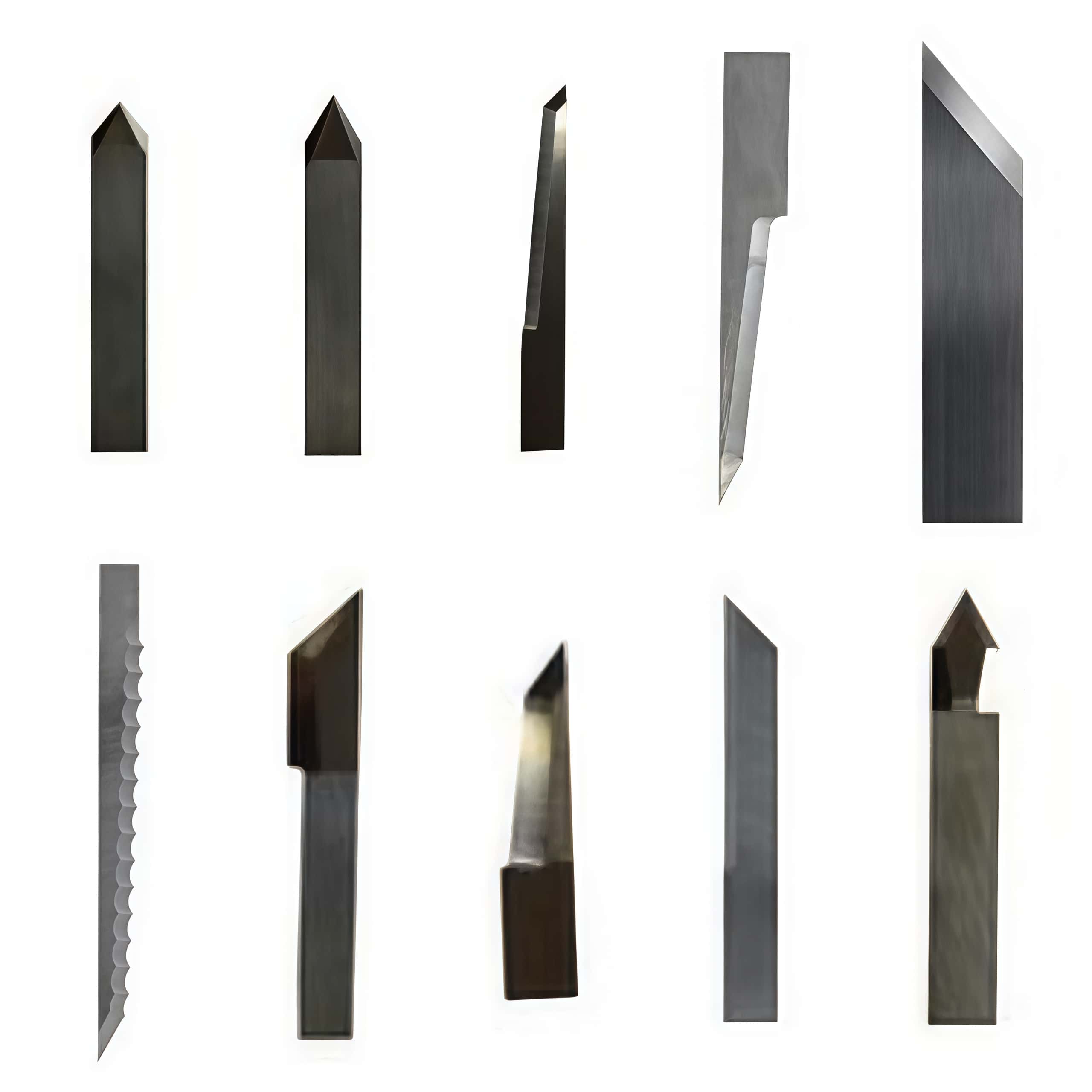 · Статические (тангенциальные) плоские ножи: применяются для резки картона, пластиков, пеноматериалов, гофрокартона, пленок и т.п.; отличаются формой и углом заточки (серии Z10, Z11, Z16, Z30, Z31, Z46 и др.).