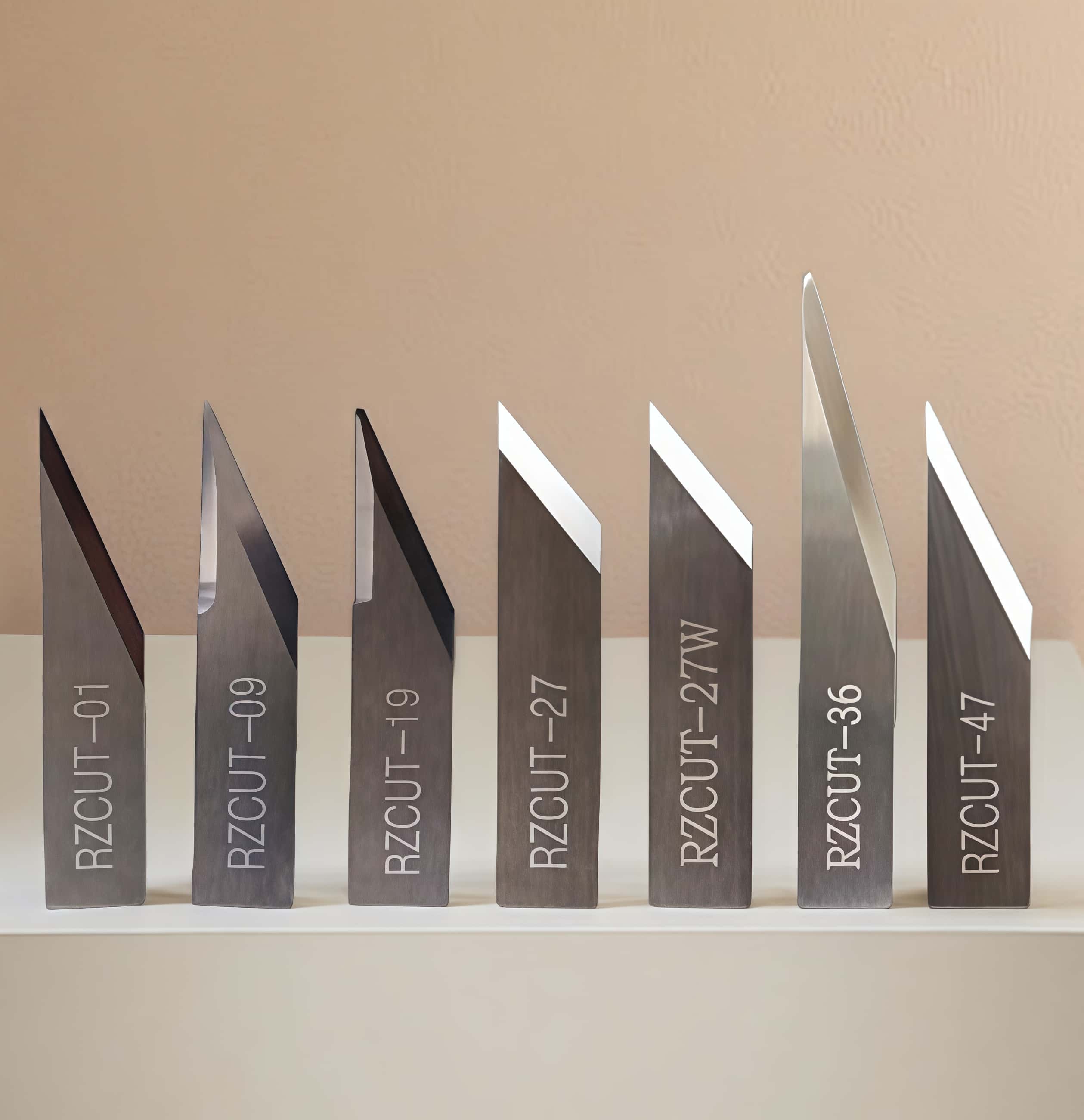 Режущие плоттеры RuiZhou в основном используют несколько стандартных моделей лезвий, совместимых с сериями RZCUT и RZCRT, для таких материалов, как винил, кожа, ткань и пенопласт.
